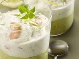 Avocado mousse with crab and prawns in jars: quick and easy!